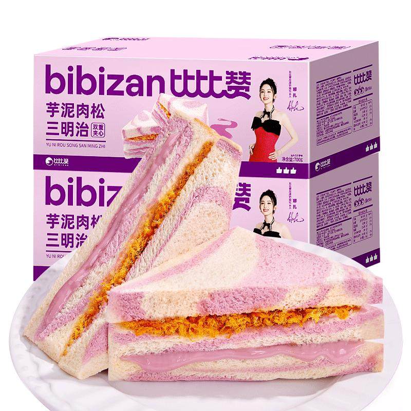 比比赞芋泥肉松三明治面包早餐