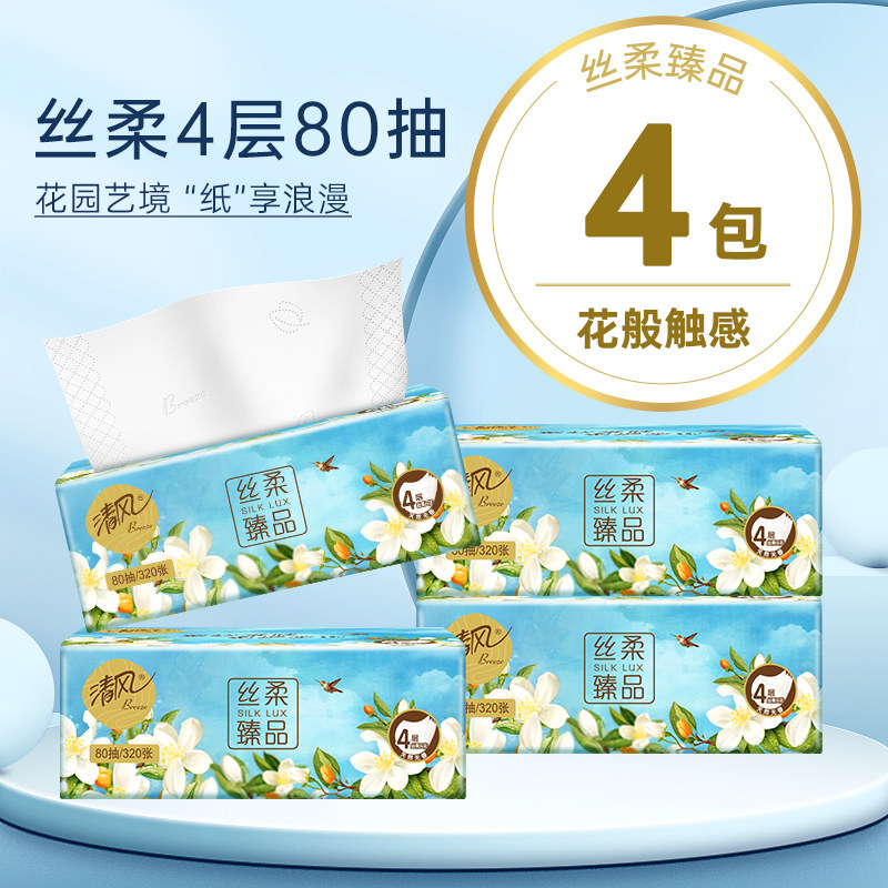 【弹礼金】清风丝柔花萃80抽*4包