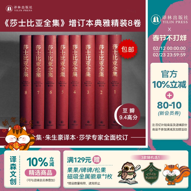 莎士比亚全集 共8册 精装礼盒版增订本朱生豪译 莎士比亚喜剧集悲剧集戏剧故事集历