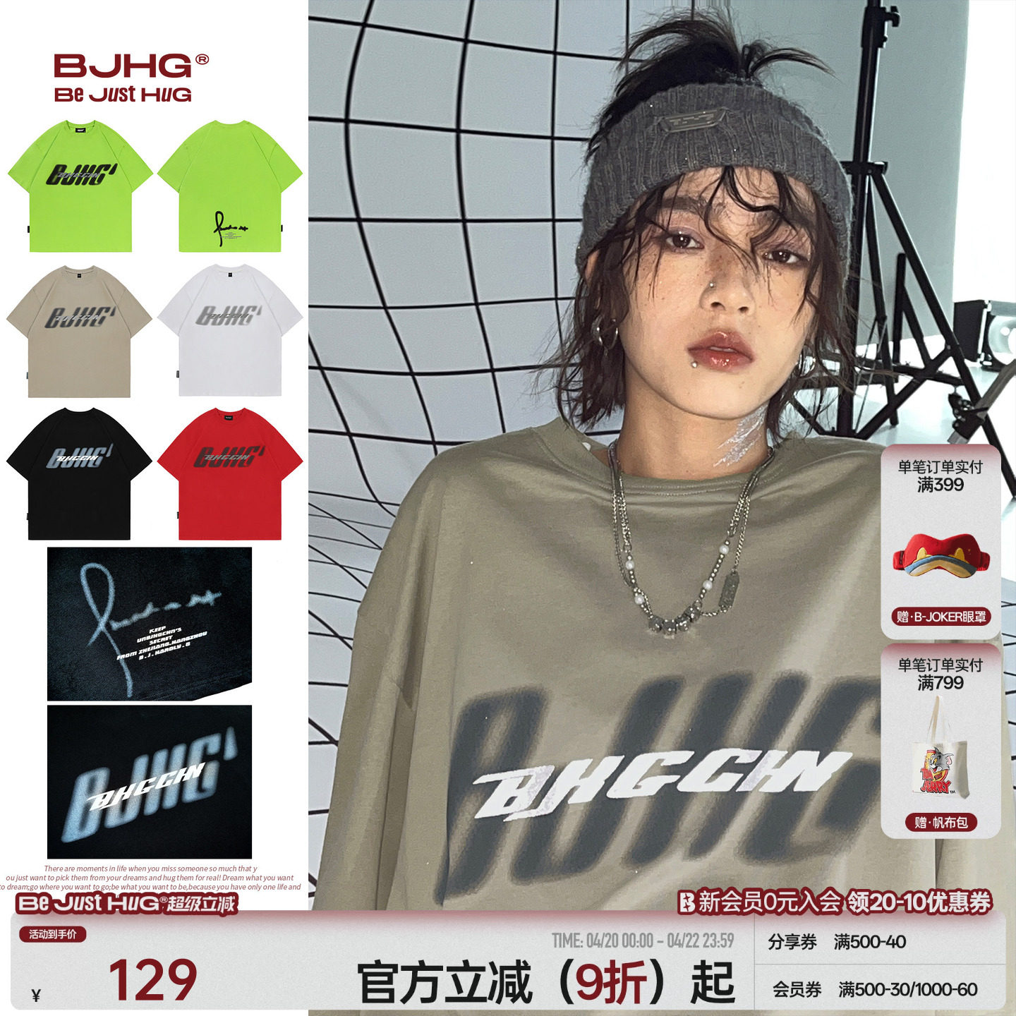 BJHG不计后果 美式短袖t恤男款夏季新款潮纯棉宽松情侣款半袖上衣
