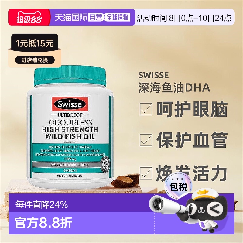 澳大利亚直邮swisse斯维诗深海鱼油DHA1500mg欧米伽3无腥味400粒