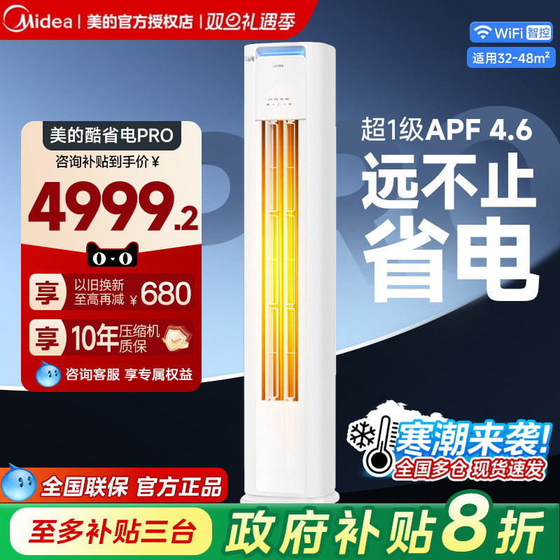 【政府补贴】美的空调酷省电3匹2匹柜机立式一级能效变频冷暖家用