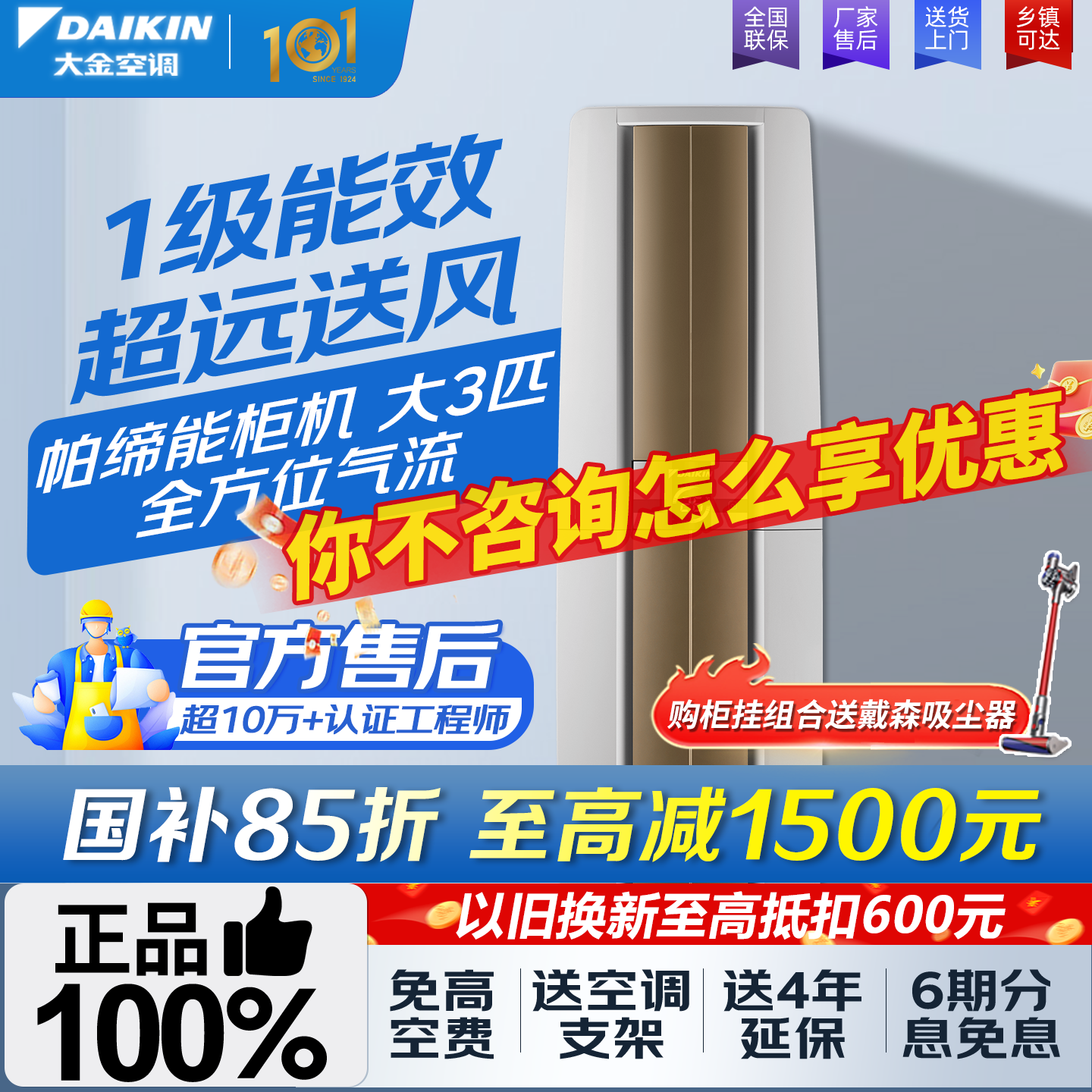 国补立减20%大金空调大3匹变频1级能效FVXF172WC-W帕缔能立式柜机