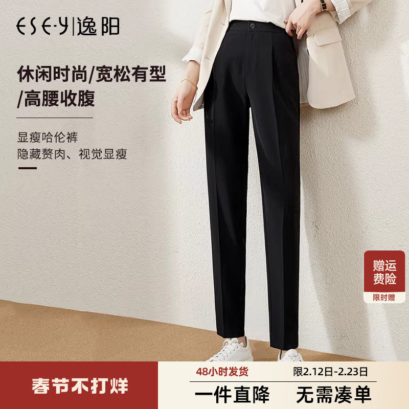 逸阳2025秋新款黑色西装裤女直筒薄款高腰宽松显瘦休闲哈伦裤子