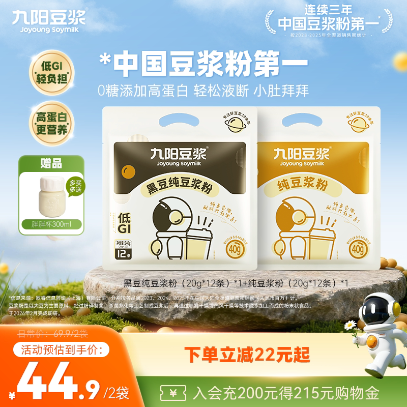 【0糖添加】九阳豆浆黑豆高蛋白原味纯豆浆粉无添加健身早餐孕妇