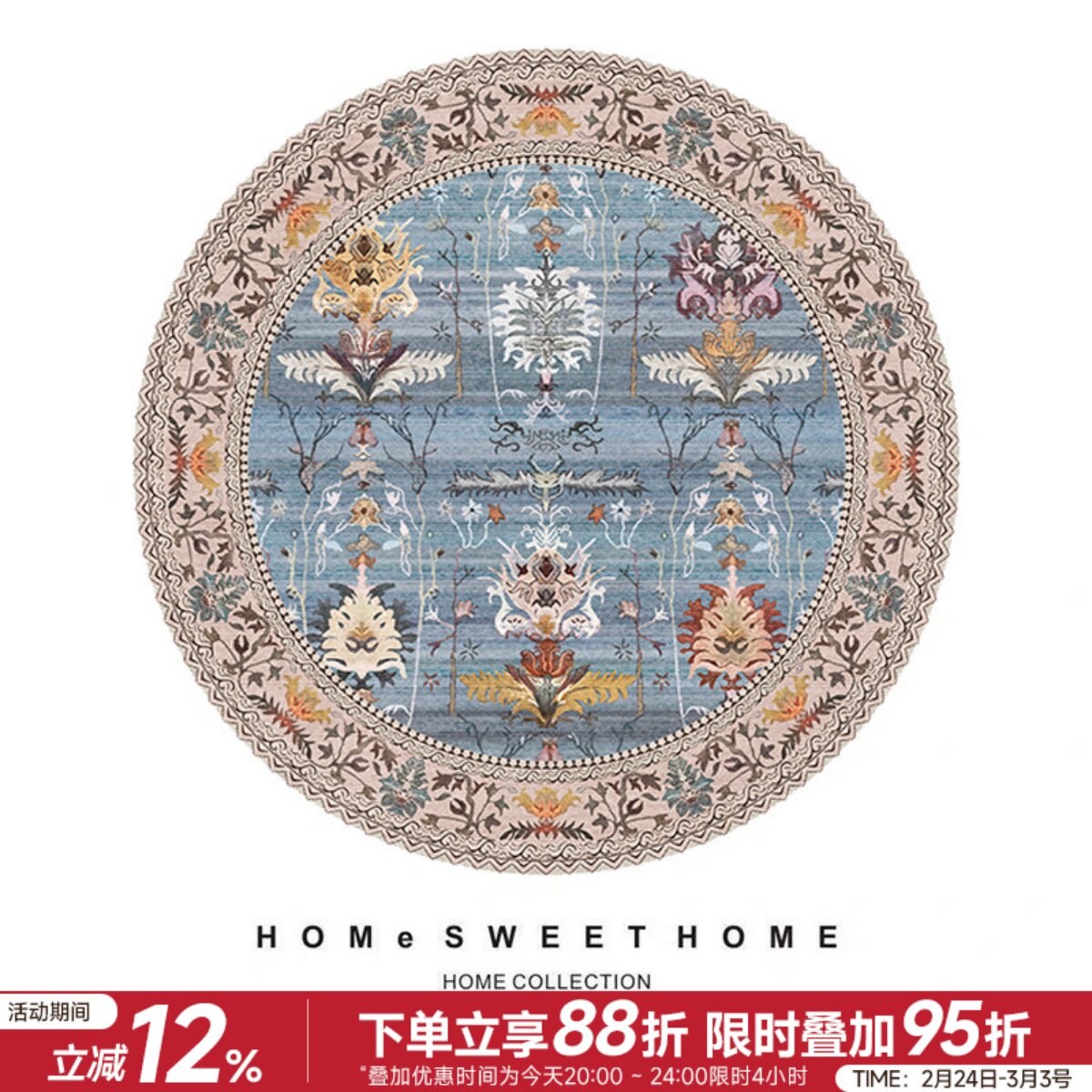 楼兰美惠/欧式美式乡村客厅民族风现代复古地毯卧室床边圆形地毯