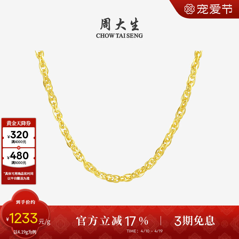 • 泡美丽»»周大生黄金项链女计价足金锁骨链绞丝链百搭吊坠素链金链子送女友