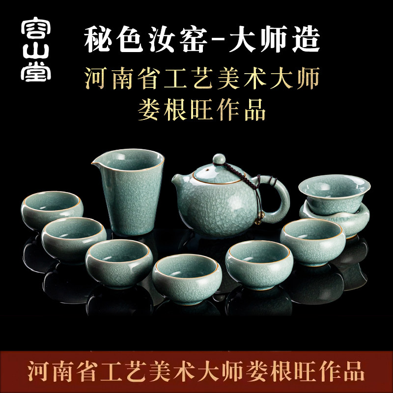 容山堂娄根旺大师汝窑整套功夫茶具套装汝瓷高档茶具新年礼盒礼物