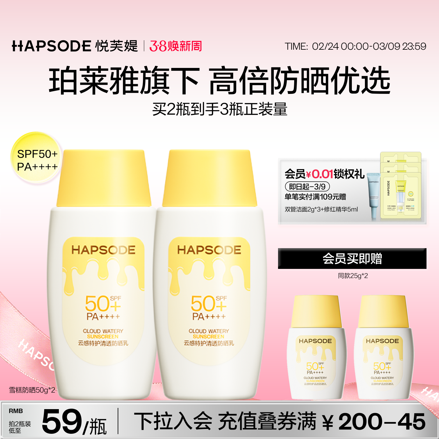 悦芙媞雪糕防晒霜SPF50+高倍清爽轻薄妆前防晒面部隔离身体紫外线