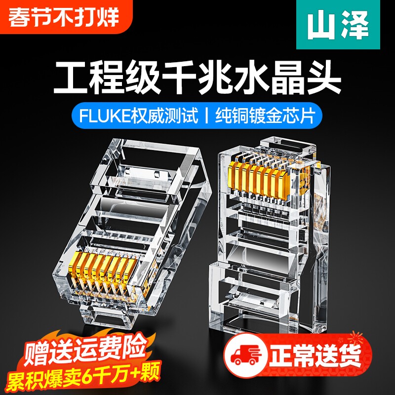 山泽水晶头超五5类超六6类7七类千兆纯铜屏蔽网线插头家用对接头