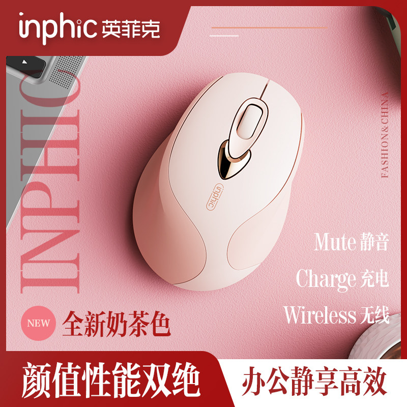 英菲克M8鼠标无线静音女生高颜值type-c可充电无限台式电脑笔记本