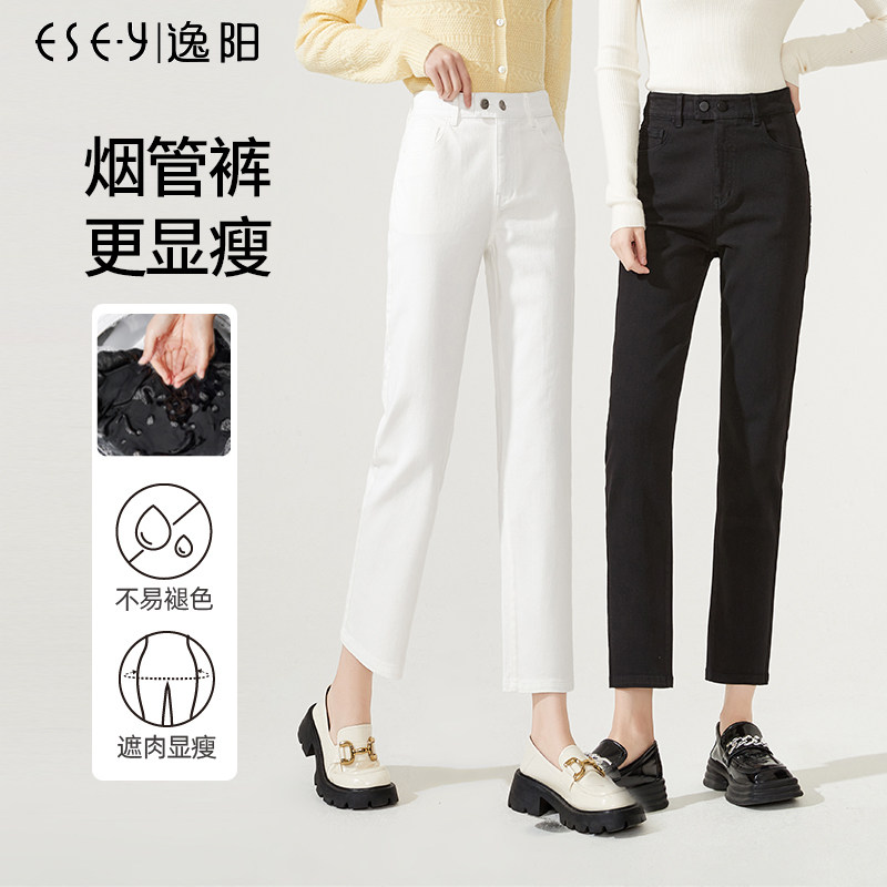 逸阳黑色直筒牛仔裤女2025年秋新款休闲高腰显瘦九分白色烟管裤