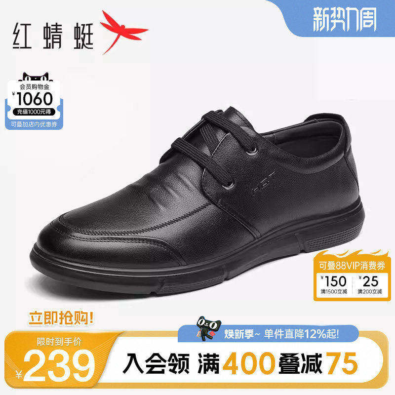 • 泡美丽»»红蜻蜓男鞋春季真皮休闲皮鞋男士软底一脚蹬鞋子休闲鞋中年爸爸鞋