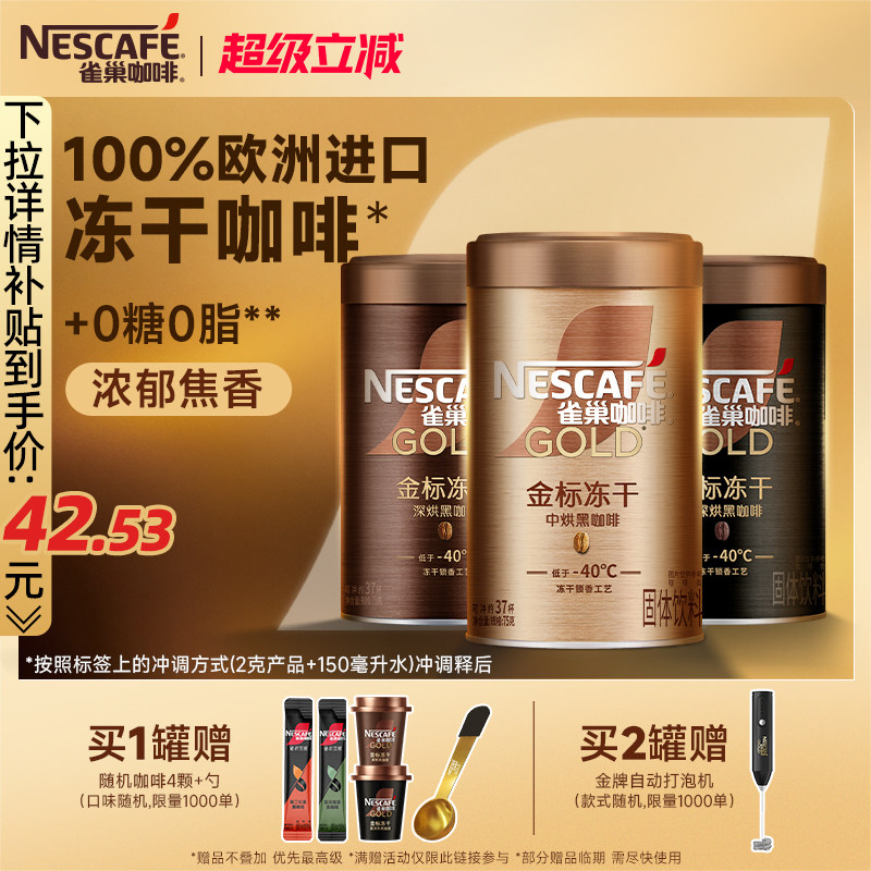 雀巢咖啡金牌金标美式速溶咖啡冻干黑咖啡咖啡粉咖啡官方旗舰店