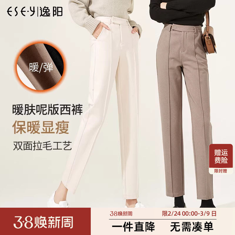 逸阳加厚防风毛呢西装裤女2025冬新款直筒宽松高腰显瘦哈伦职业裤