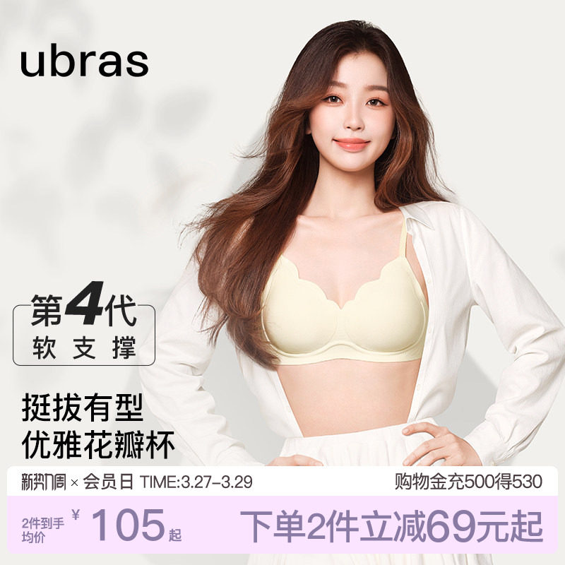 虞书欣同款ubras小花瓣杯内衣薄款小胸聚拢性感纯欲无痕文胸罩女