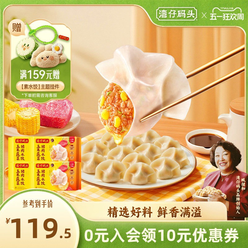 湾仔码头水饺玉米三鲜白菜猪肉720g*4袋煎饺早餐速冻饺子