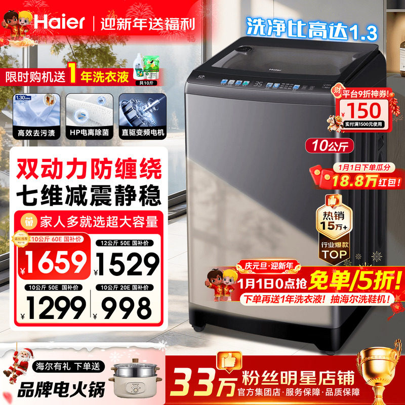 海尔洗衣机防缠绕50E家用10公斤大容量全自动波轮手搓洗60E