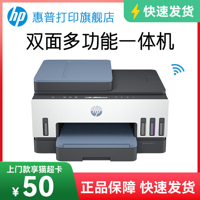 惠普tank755彩色手机无线家用学生迷小型墨仓式连供自动双面打印一体机复印扫描