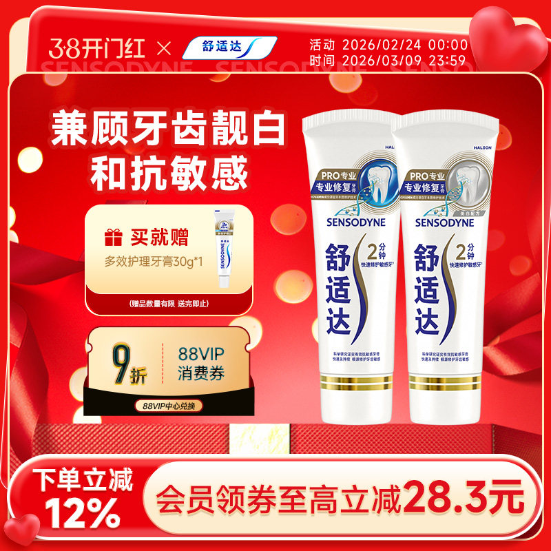 舒适达抗敏感牙膏专业修复美白180g混合装亮白牙齿4D修复小亮钻