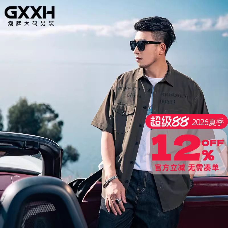 GxxH大码男装日系短袖衬衫男潮流宽松个性休闲百搭薄款短袖上衣