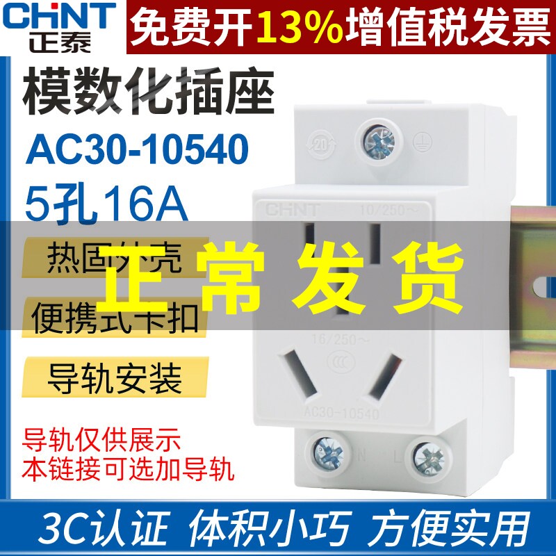正泰AC30二插三孔16A五孔模数化终端组合电箱导轨式空调插座10540