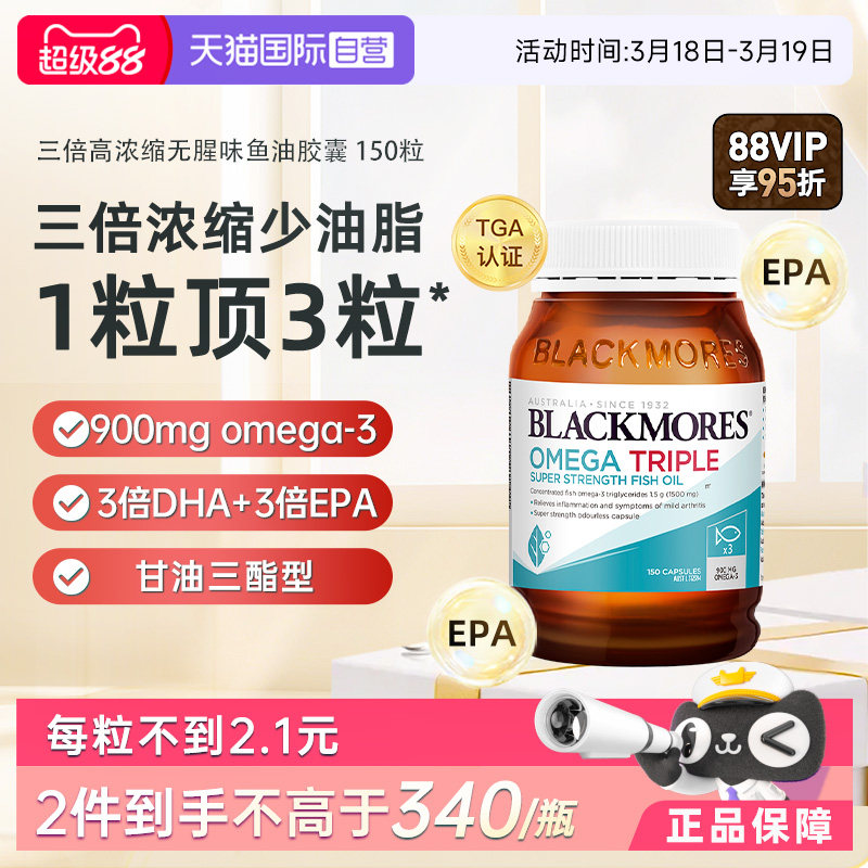 【自营】BLACKMORES澳佳宝3倍dha深海omega-3浓缩鱼油胶囊150