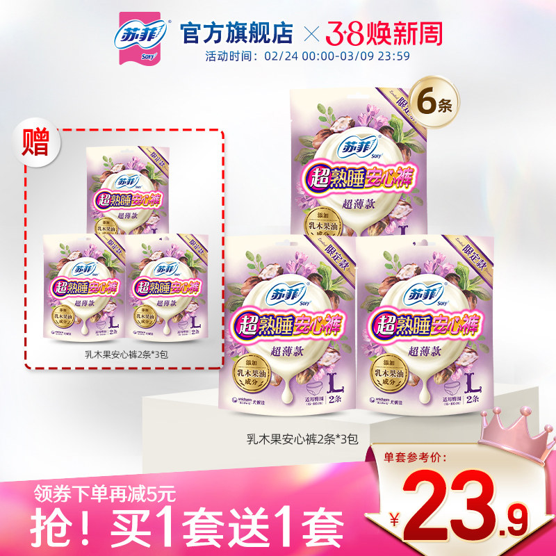 sofy/苏菲卫生巾超熟睡安心裤乳木果护肤安睡裤量大夜用姨妈巾