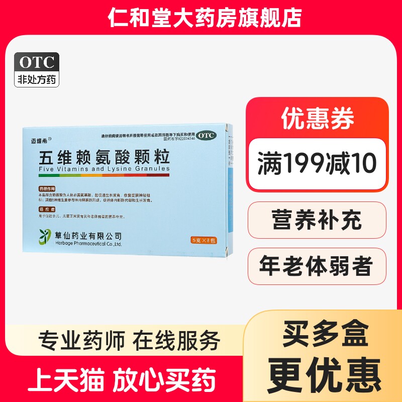 速发迈维希五维赖氨酸颗粒8包小儿童发育年老体弱营养补充