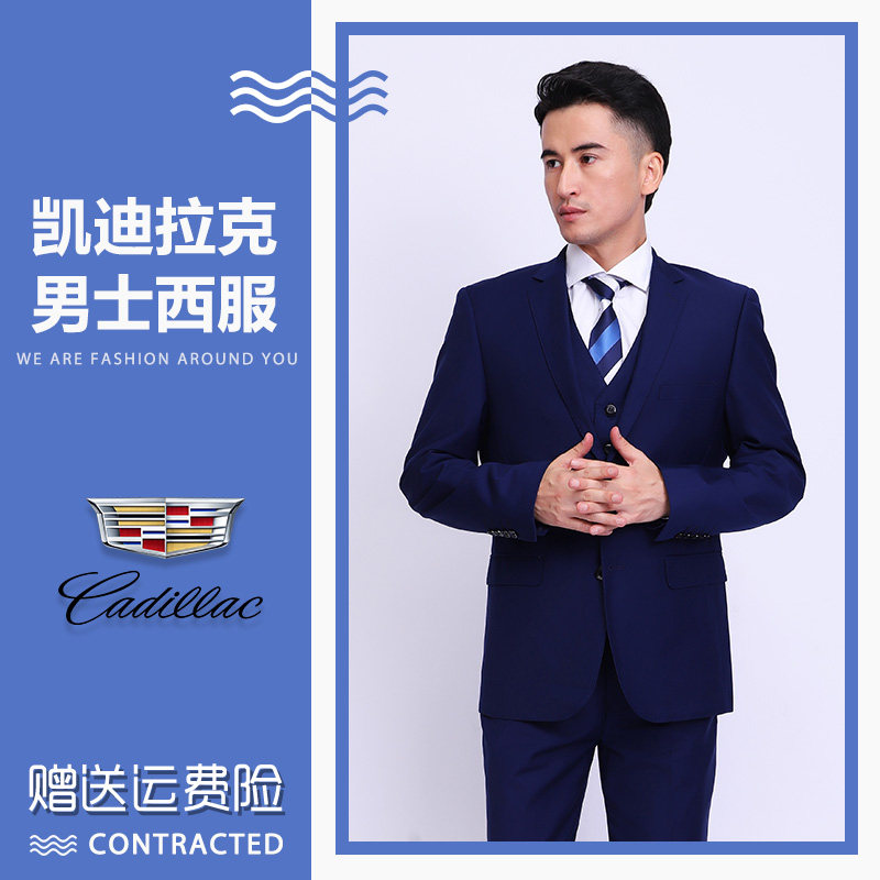凯迪拉克4S店销售展厅男神西装凯迪拉克高品质海军蓝同款免烫西服