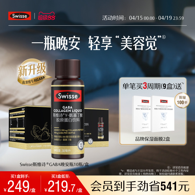 【热巴推荐】Swisse斯维诗GABA晚安瓶胶原蛋白肽玻尿酸保健品饮品