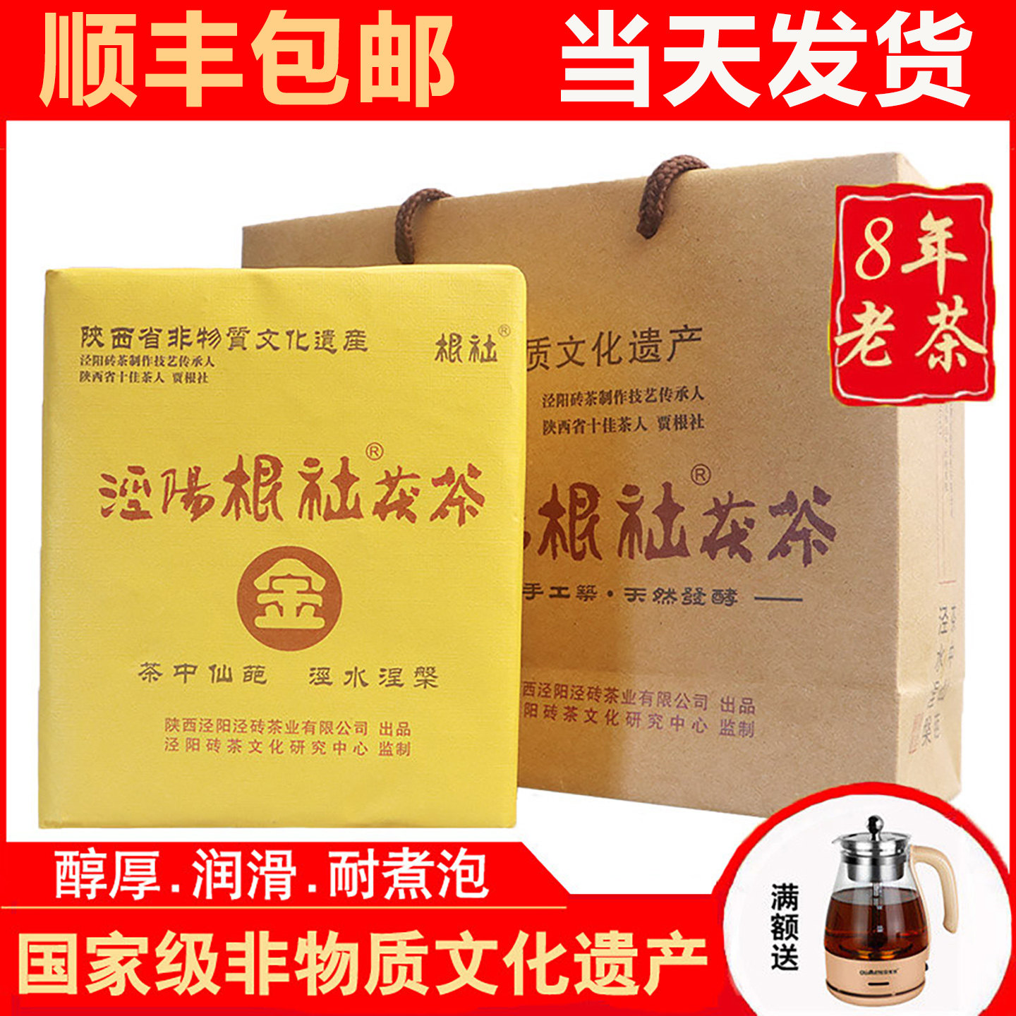 泾阳根社茯茶陕西特产黑茶特一级陈年泾砖茯砖茶泾阳金花手筑茯砖