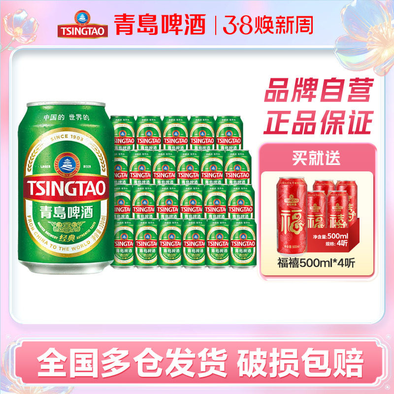 青岛啤酒经典系列330ml*24听罐啤酒整箱包邮