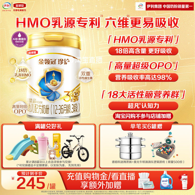 【HMO重磅升级】新鲜-金领冠珍护3段12-36个月婴幼儿牛奶粉900g*1