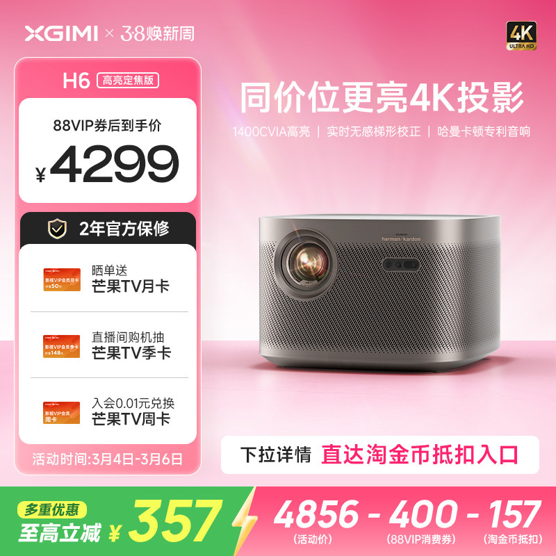 • 泡美丽»»极米H6高亮定焦版4K家用投影仪超高清高亮度智能投影机卧室客厅大屏