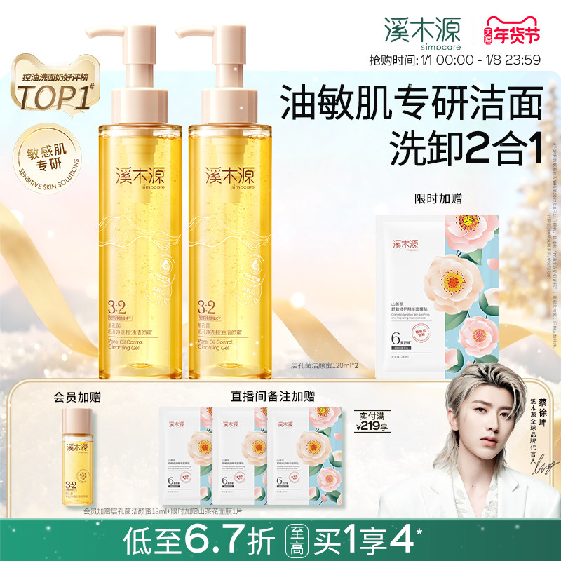 溪木源层孔菌洁颜蜜氨基酸洗面奶女油皮敏感肌洁面温和控油卸妆