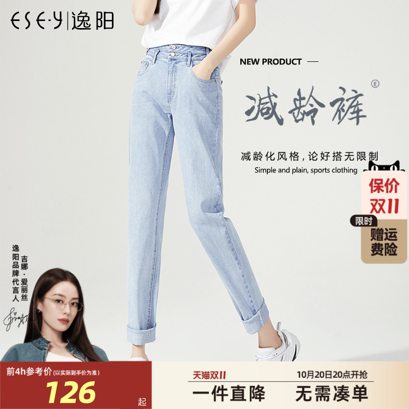 逸阳高腰牛仔裤女士秋季新款萝卜长裤显瘦宽松黑色哈伦裤老爹裤子