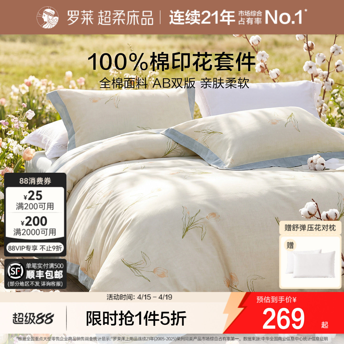 罗莱家纺床上四件套全棉纯棉被套床单床笠被罩双人棉套件宿舍