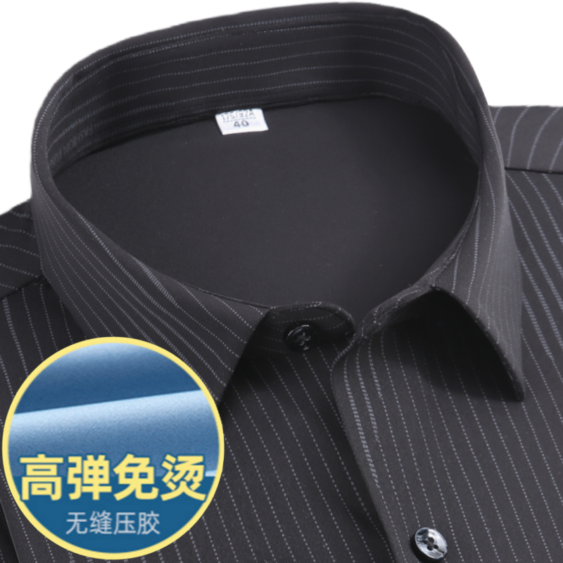 春季加大码无痕弹力长袖衬衫男士黑条纹商务免烫中年抗皱保暖衬衣