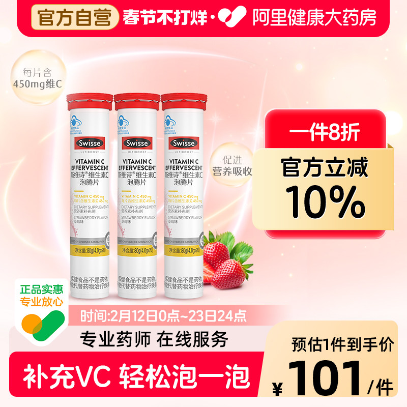 Swisse斯维诗维生素C草莓泡腾片20片*3支增强抵抗力补充VC官方