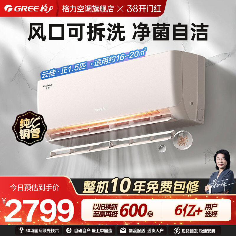 • 泡美丽»»格力官方空调挂机正1.5匹变频卧室家用挂式冷热两用节能正品 云佳