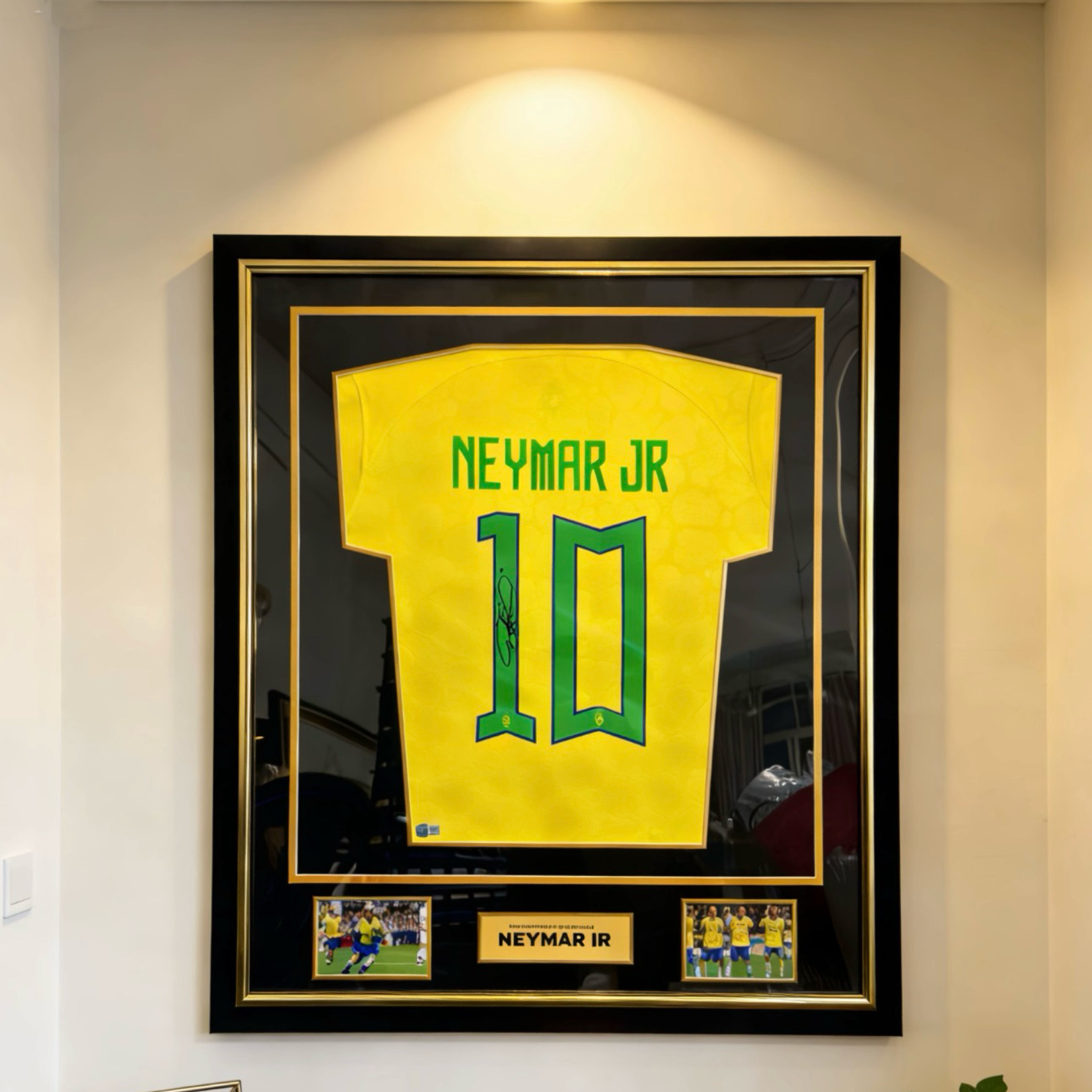 • 泡美丽»»2022世界杯巴西内马尔复刻签名球衣裱框装饰品欧洲杯巴西
