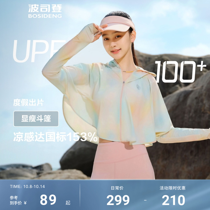 明星同款波司登防紫外线UPF100斗篷设计透气冰丝凉感原纱防晒衣女