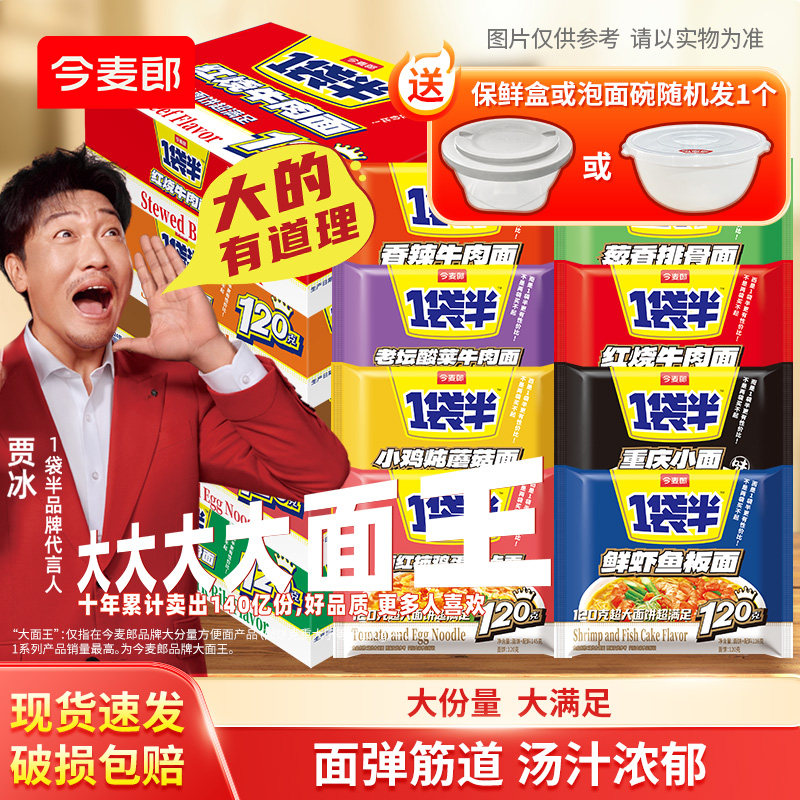 • 泡美丽»»今麦郎一袋半方便面整箱红烧牛肉面袋装泡面速食面大份量面饼充饥