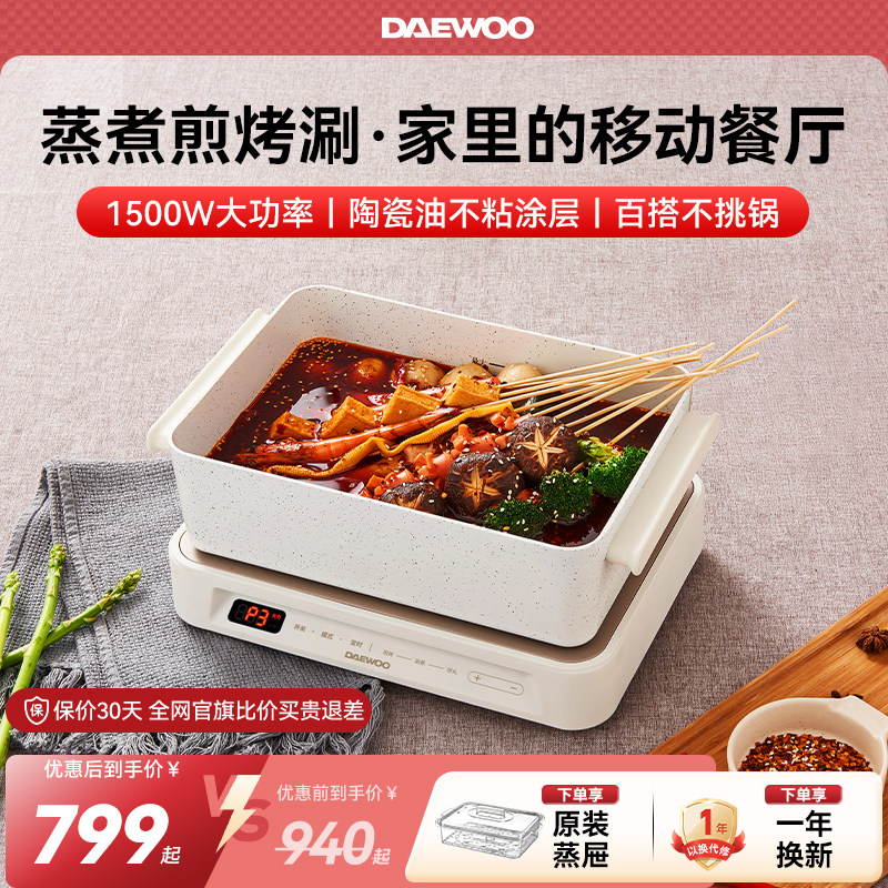 大宇多功能料理锅电火锅涮烤一体烹饪机电煮锅蒸炒煎电烤肉网红锅
