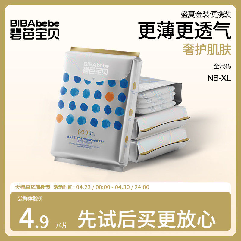 碧芭宝贝盛夏金装纸尿裤试用装新升级超薄超透气干爽尿不湿拉拉裤