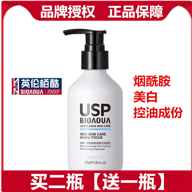 usp英伦栢酷氨基酸烟酰胺控油洁面乳洗面奶男士专用美白增白抖音