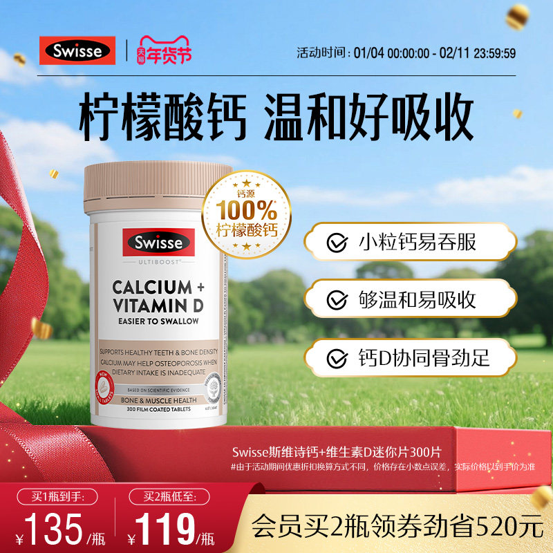 Swisse斯维诗mini柠檬酸钙娘娘钙成人女性维生素d3中老年人钙片*2