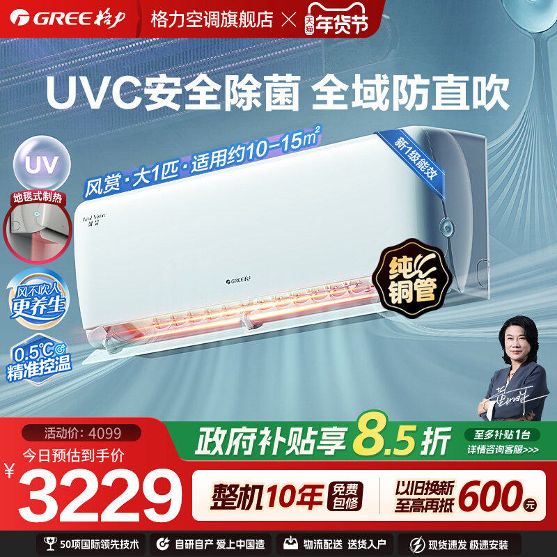 【格力空调】新一级能效变频冷暖家用大1匹除菌风赏挂机官方正品