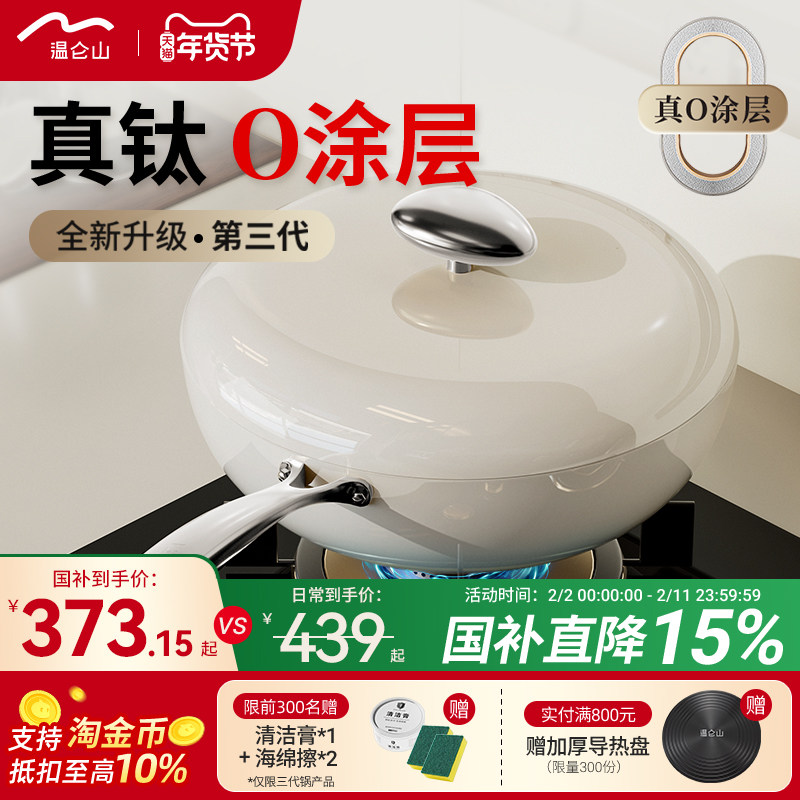 Velosan温仑山钛0涂层炒锅无涂层不粘锅家用燃气陶瓷鹅卵石炒菜锅